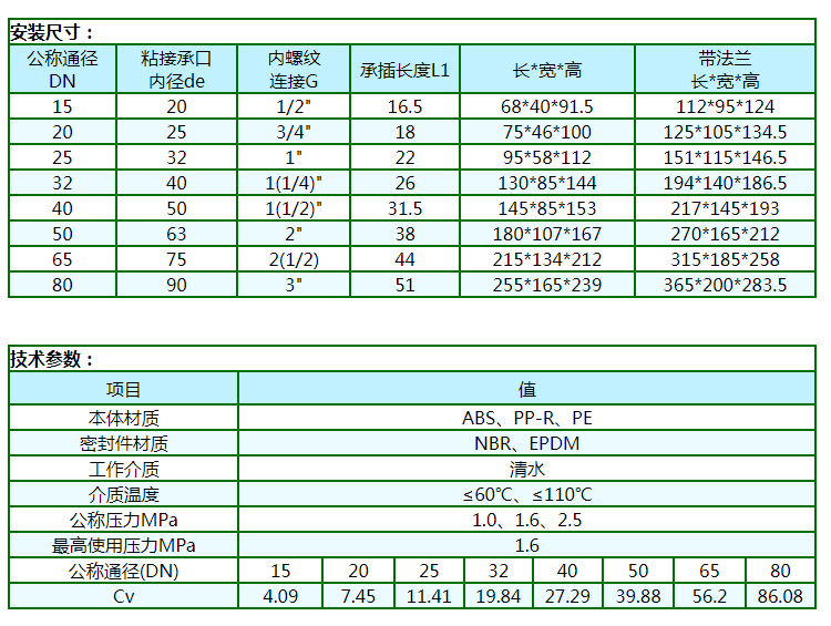 本產(chǎn)品民用系列選用國際通用型食品級工程塑料(ABS、PP-R、PE等)注造。工業(yè)用系列選用進口阻燃型高強度工程塑料(PC等)注造。產(chǎn)品具有重量輕、耐腐蝕、不生銹、不結(jié)垢、導(dǎo)冷不結(jié)霜、導(dǎo)熱系數(shù)低,絕緣性能好,環(huán)保衛(wèi)生等優(yōu)點。啟閉原理上:采用浮動閥芯,利用流體壓力差,誘導(dǎo)式啟閉的專利技術(shù)成果。因啟閉時無磨損(屬接觸型啟閉),而解決了傳統(tǒng)閥門因強制性啟閉而造成的啟閉部件和密封件磨損所引起的“跑、冒、滴、漏”的歷史性難題。它具有安裝使用方便,節(jié)能節(jié)水效果顯著(可節(jié)約傳統(tǒng)閥門的外泄內(nèi)漏所浪費掉的水),使用壽命長及物美價廉等特點。
