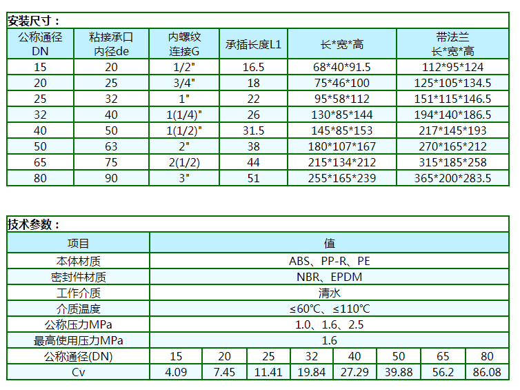 本產(chǎn)品民用系列選用國際通用型食品級工程塑料(ABS、PP-R、PE等)注造。工業(yè)用系列選用進(jìn)口阻燃型高強(qiáng)度工程塑料(PC等)注造。產(chǎn)品具有重量輕、耐腐蝕、不生銹、不結(jié)垢、導(dǎo)冷不結(jié)霜、導(dǎo)熱系數(shù)低,絕緣性能好,環(huán)保衛(wèi)生等優(yōu)點(diǎn)。啟閉原理上:采用浮動(dòng)閥芯,利用流體壓力差,誘導(dǎo)式啟閉的專利技術(shù)成果。因啟閉時(shí)無磨損(屬接觸型啟閉),而解決了傳統(tǒng)閥門因強(qiáng)制性啟閉而造成的啟閉部件和密封件磨損所引起的“跑、冒、滴、漏”的歷史性難題。它具有安裝使用方便,節(jié)能節(jié)水效果顯著(可節(jié)約傳統(tǒng)閥門的外泄內(nèi)漏所浪費(fèi)掉的水),使用壽命長及物美價(jià)廉等特點(diǎn)。